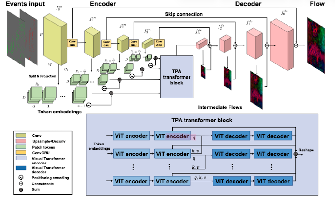 I developed SDformerFlow, the first fully spiking transformer-based architecture for optical flow estimation using event cameras. This work was part of my research on combining event cameras with spiking neural networks (SNNs) for efficient motion estimation. I designed and implemented two solutions: STTFlowNet, a U-shaped artificial neural network (ANN) architecture with spatiotemporal shifted window self-attention (swin) transformer encoders, and SDformerFlow, its fully spiking counterpart incorporating swin spikeformer encoders. I also developed two variants of the spiking version with different neuron models. This work represents the first use of spikeformers for dense optical flow estimation. I conducted end-to-end training for all models using supervised learning, achieving state-of-the-art performance among SNN-based event optical flow methods on both the DSEC and MVSEC datasets, with significant reduction in power consumption compared to equivalent ANNs.