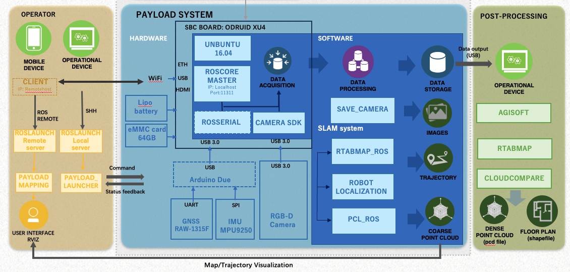 This project developed a payload system for indoor mapping specifically designed for disaster rescue purposes. The system consists of a depth camera, IMU (Inertial Measurement Unit), and a rover platform. The software implementation is based on RTMBSLAM (Real-Time Multi-Baseline SLAM) with Extended Kalman Filter (EKF) for sensor fusion, enabling robust and accurate indoor mapping in challenging environments. The payload system enables autonomous navigation and mapping in disaster scenarios where GPS signals are unavailable or unreliable. By fusing data from multiple sensors through EKF, the system provides reliable pose estimation and real-time mapping capabilities essential for rescue operations.